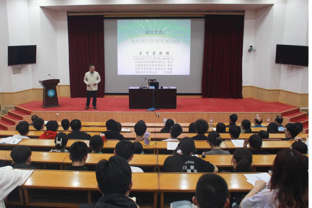 师生作“现代项目管理发展动向”学术报告,学院相关专业教师、工程管理专业学生代表参加。