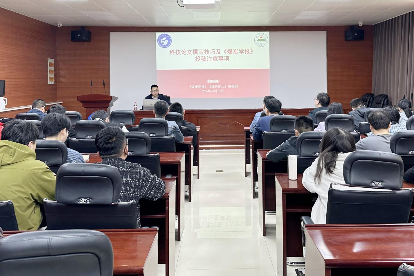 邀请《煤炭学报》 《绿色矿山》编辑部副主任郭晓炜在东校园2号楼201会议室作题为“科技论文撰写技巧及《煤炭学报》投稿注意事项”报告会,相关专业教师和研究生代表参加。