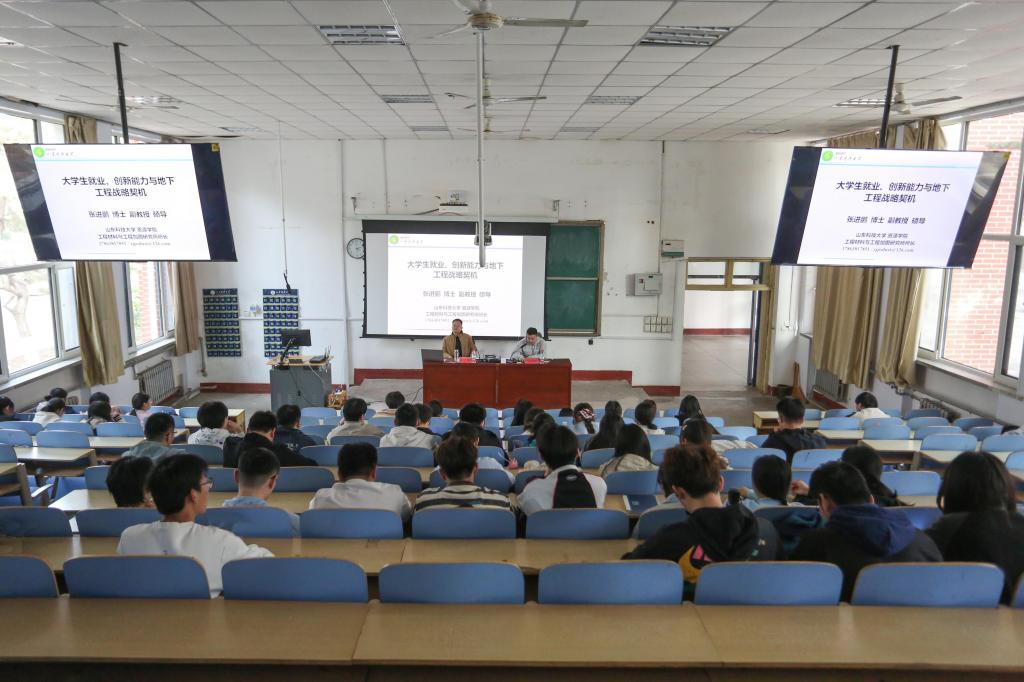 在1A107举办大学生创新能力和地下工程战略契机讲座。讲座由学院辅导员主持,副教授、硕士研究生导师张进鹏博士担任主讲。