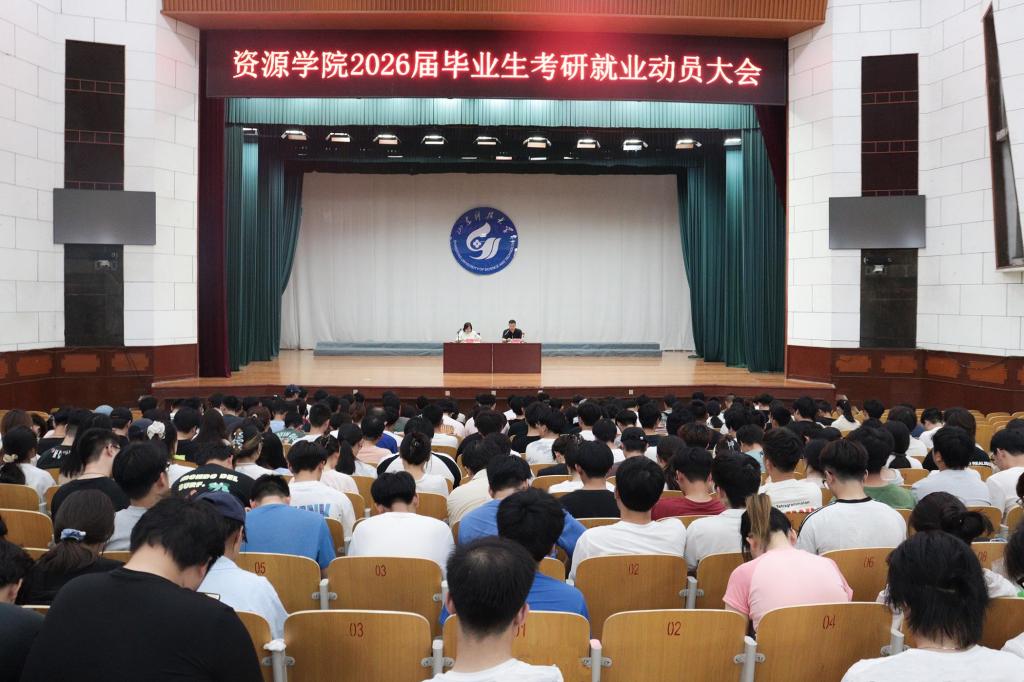 在西校园礼堂召开2026届毕业生工作启动仪式暨考研就业动员大会,学院学工办主任兼团委书记、2026届毕业生辅导员洒艳作动员讲话,2025届毕业生辅导员李炳树主持会议,2026届全体毕业生及大一、大二年级同学积极参加。